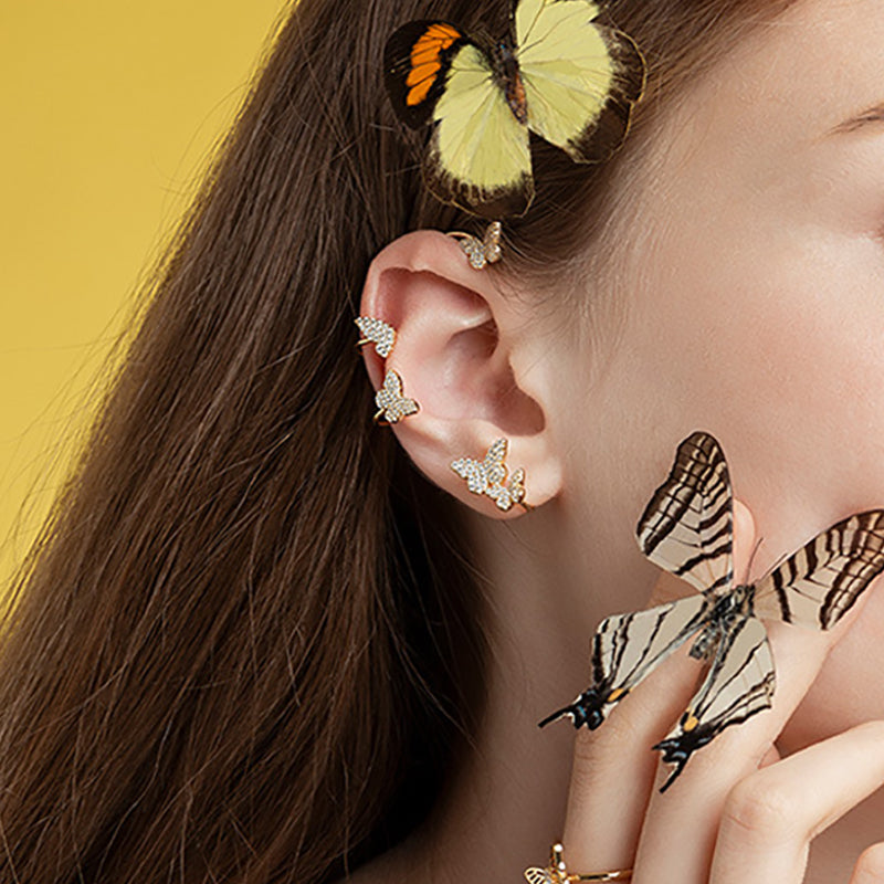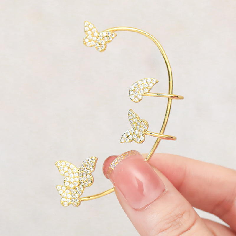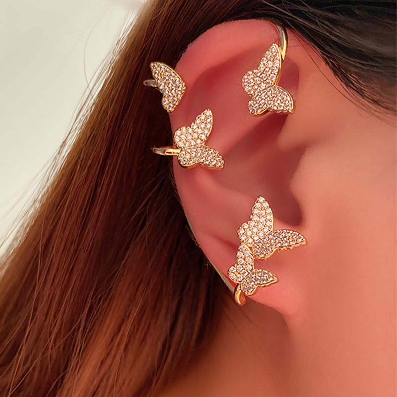 【High Quality】These butterfly ear cuff are made of eco-friendly copper and with rhinestones inlaid on them. Comfortable to wear without heavy rending or tearing, they are so lightweight you will forget you have them on. It is a kind of hard and anti-rust metal, 100% nickel free, such ear clip can maintain hardness after many times wearing, won't deform.