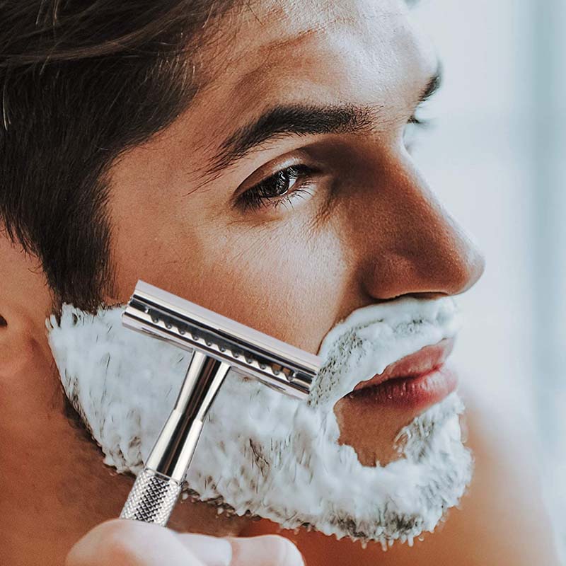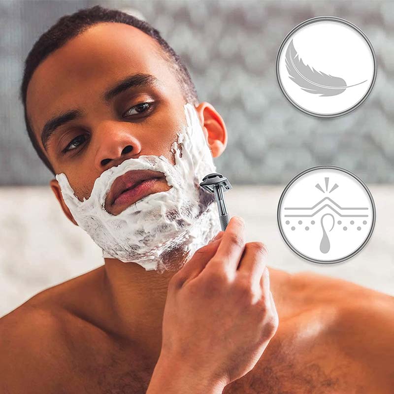 ღ 【Stylish Double Sided Safety Razor】 The double edge razor provides a maximum shaving experience by lifting and removing hair follicles, users can get the closest and cleanest shave. With its unique textured grip, this metal razor provides a firm and comfortable grip, giving you excellent control and a perfectly precise shaving experience.