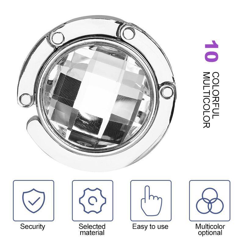 • Folding Bag Hook: Each round hook is made of alloy with color diamond series, which looks more beautiful and refined.