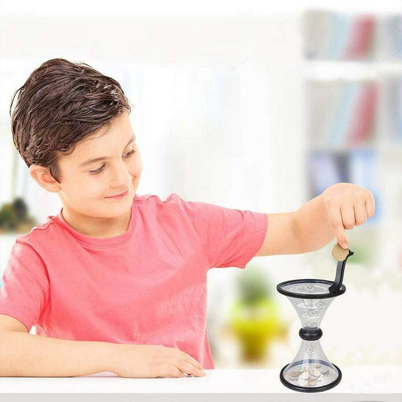 Simply slot your coin at the top and watch it spin and spin until it reaches the bottom.