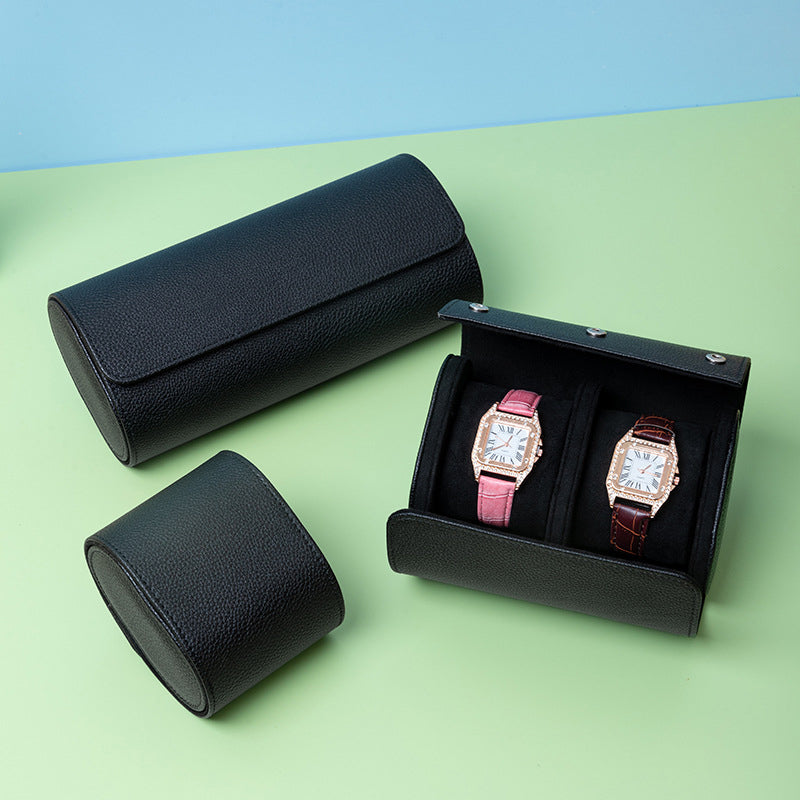 FLAT BACK: The back of this watch roll is flat so you may set it on a table or desk without the risk of it rolling off the edge. Other watch rolls are completely round, leaving them venerable to rolling around while set down.