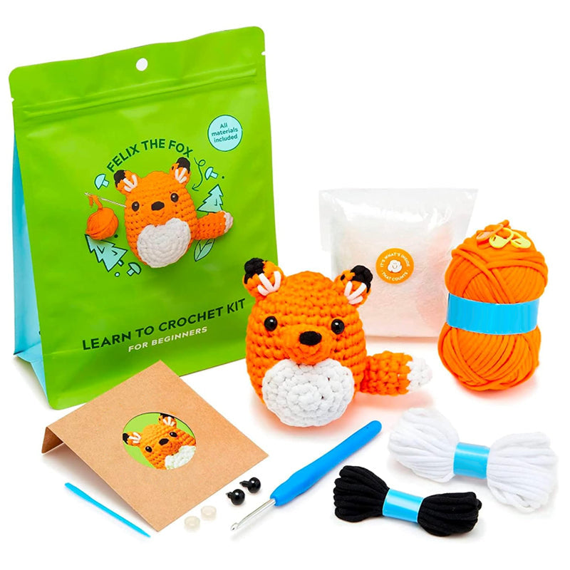 ALL-IN-ONE CROCHET ANIMAL KIT - One set meets all your need and help you save times and money! Equipped with everything you need to start - yarn, eyes, a crochet hook featuring an ergonomic handle, yarn needles, cotton stuffing, knitting markers, detailed instructions and easy to follow videos. This knitting kit is ideal for beginners and you could crochet variable pattern of animals easily by yourself.