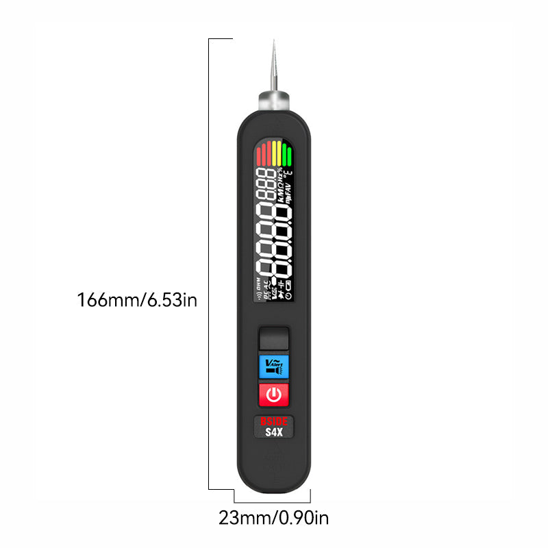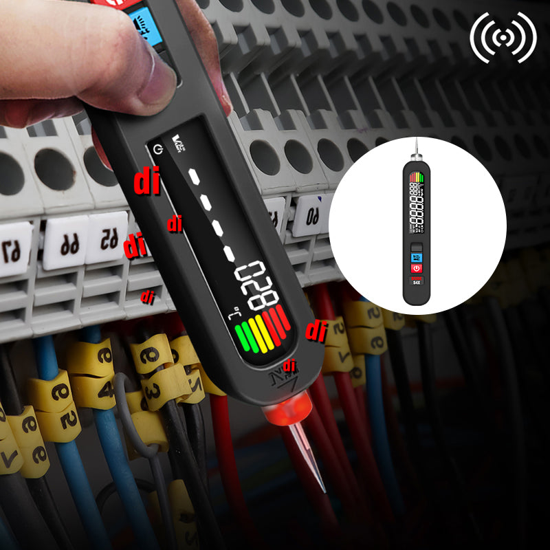 • [Probes-Free Voltage Measurement]: No need to connect with other test leads, the intelligent multimeter can test ac voltage, just let the test probe touch the conductor with AC voltage, and the voltage reading will display on screen. To obtain more accurate test results, it is recommended not to wear gloves when using.