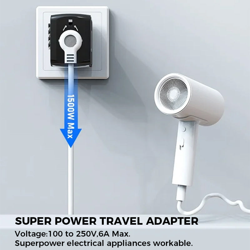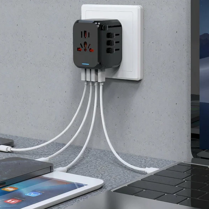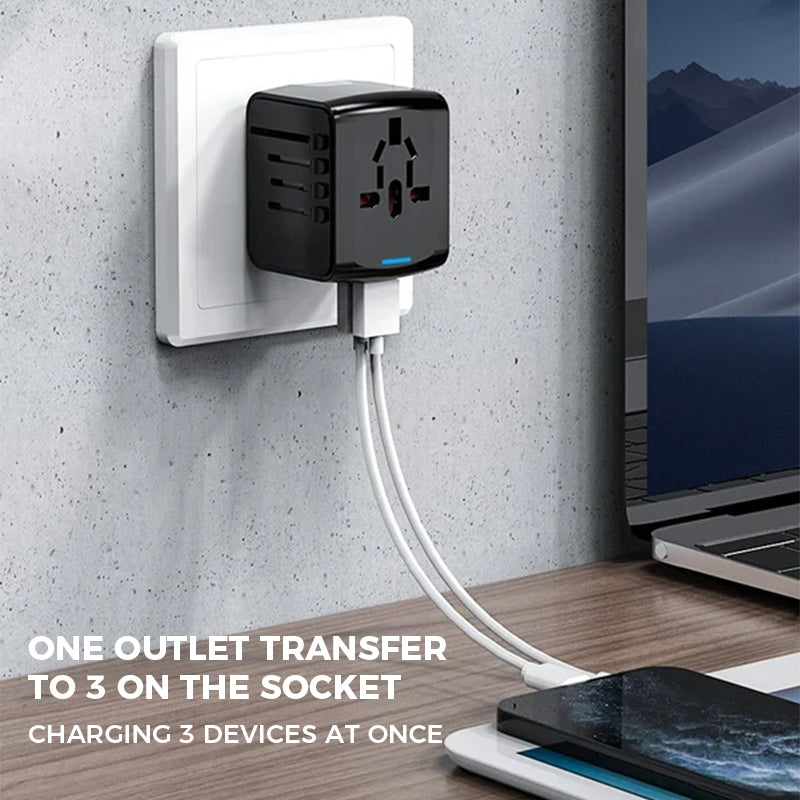 • One Adapter, 150+ Countries - Stay Charged No Matter Where You Are! Can't charge your essential devices when your overseas? Do you need to charge multiple devices while traveling? Discover a world without boundaries with our Universal Travel Adapter! Whether you're jet-setting for business, embarking on a global adventure, or simply crossing borders for a short vacation, our adapter ensures you stay connected wherever you are. Designed with the modern traveller in mind, it’s not just an adapter – it’s your global travel companion.