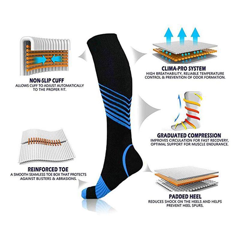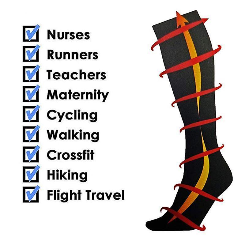 • IMPROVED BLOOD CIRCULATION: graduated compression provided to stimulate blood flow and improve oxygen delivery to the muscles in your legs. These socks will make cramping, fatigue, swelling, delayed muscle recovery, spider veins and varicose veins a thing of the past.