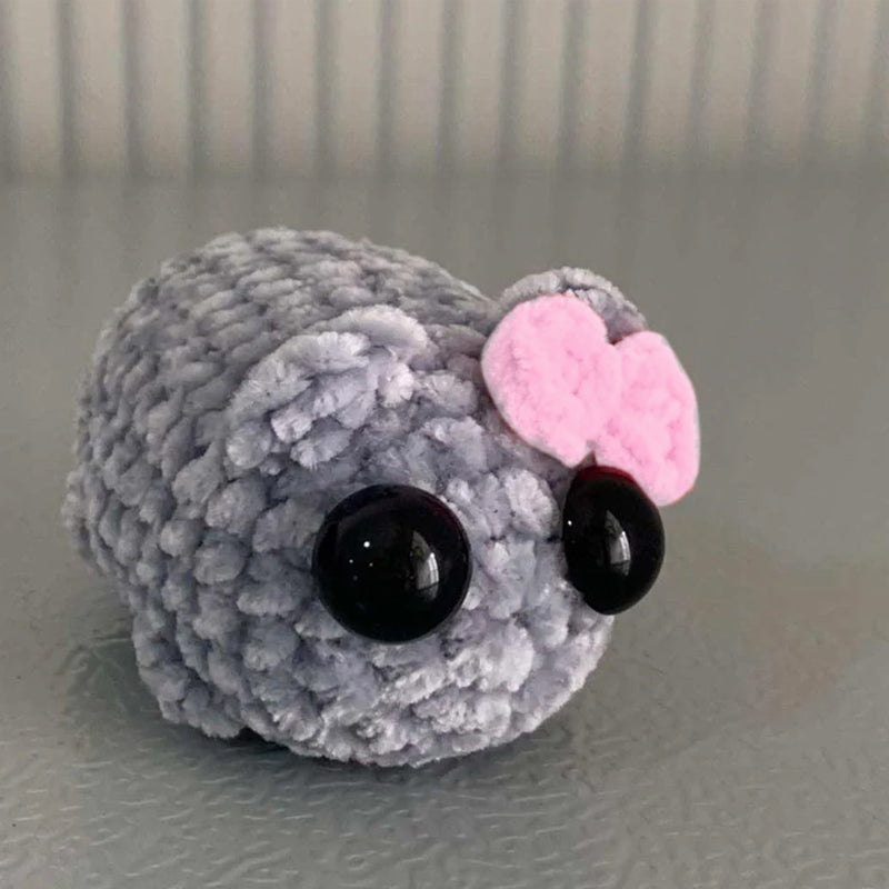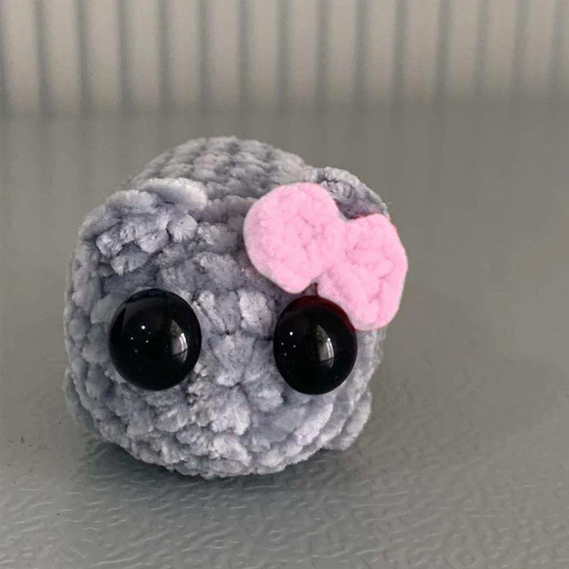 Appearance: The appearance of Sad Hamster Crochet Doll presents the image of a cute hamster. It usually has a rounded body, a soft surface made of fleece or wool, and large, round black eyes. The designer may use different colors to express the feeling of sadness, such as choosing gray, dark blue or black as the main color.
